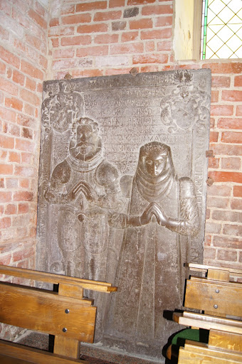 Płyta nagrobna (miały być dwie, ale nie mogłam drugiej zlokalizować). Lekko jeszcze brudna po remoncie posadzki. Piękna, prawda? Mężczyzna ma co prawda lekko odstające uszy, ale to nic nie szkodzi.